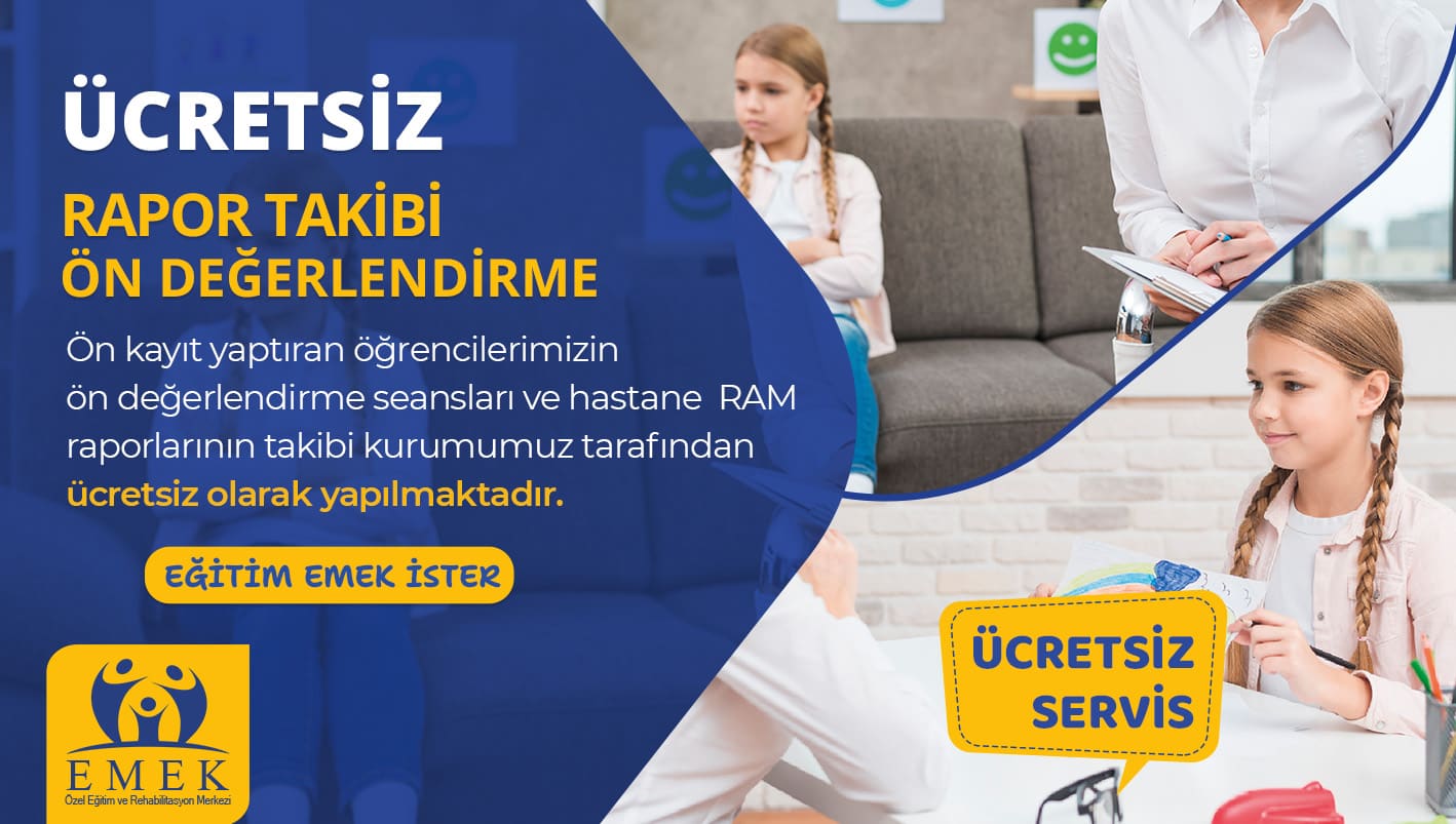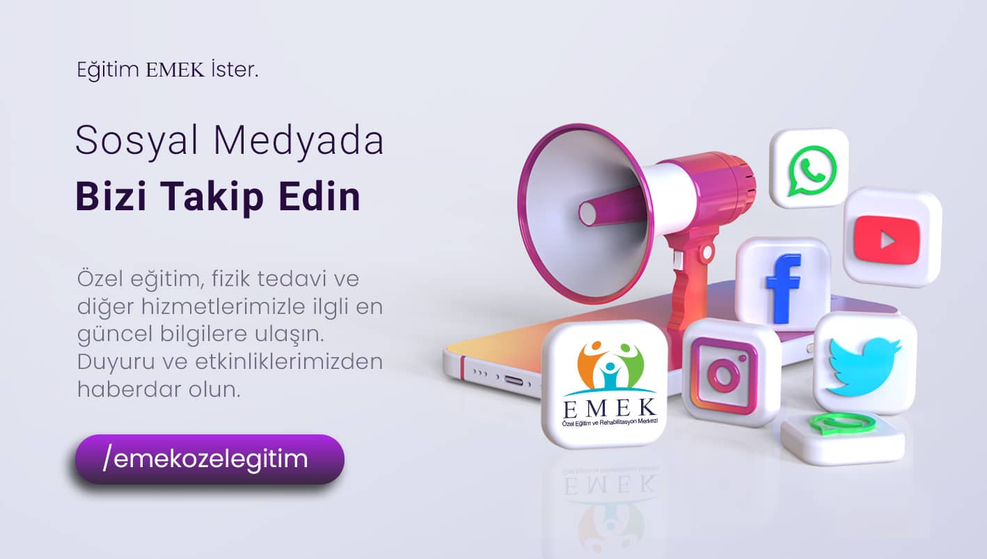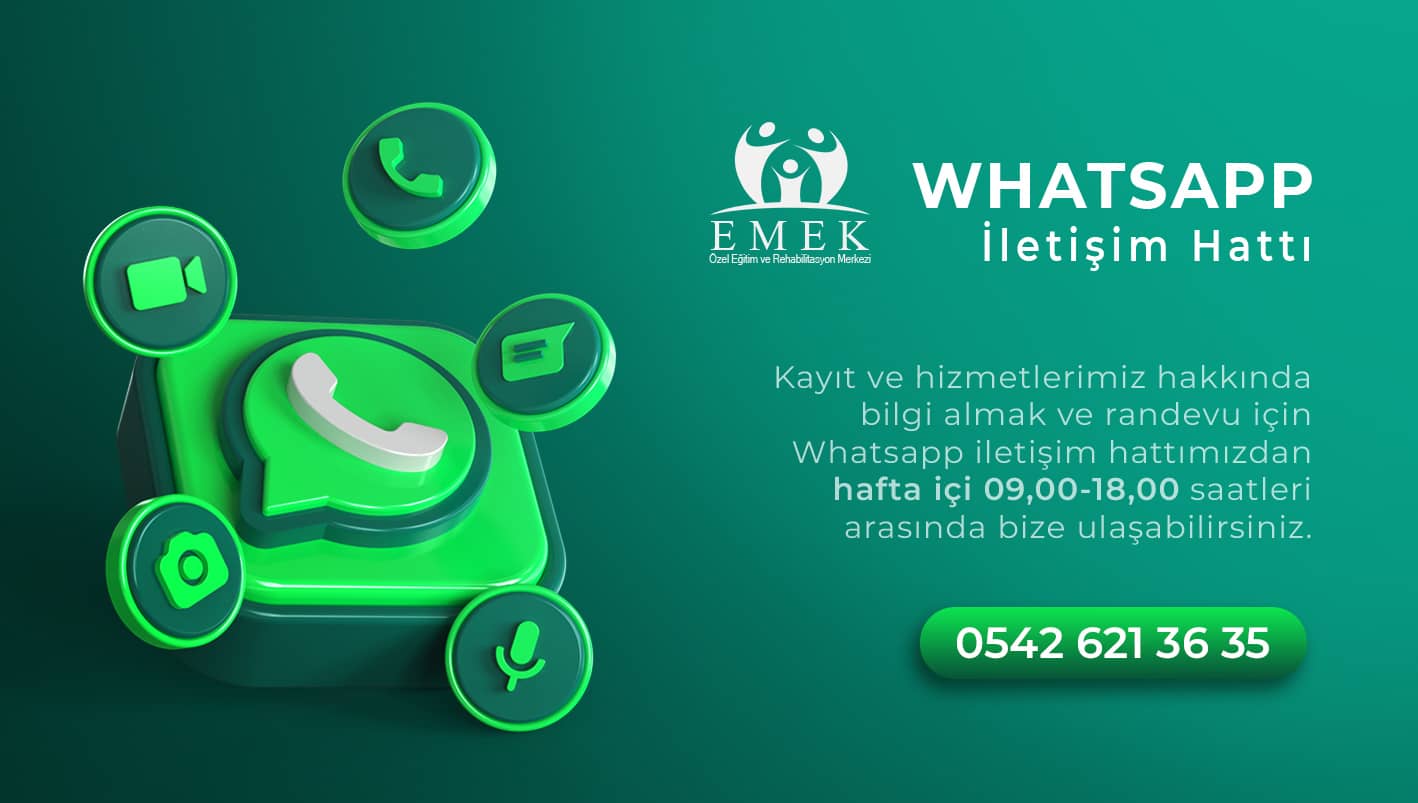 Emek Özel Eğitim ve Rehabilitasyon Merkezi olarak, 2018 yılında “Eğitim EMEK İster “ düsturunu benimseyip özel gereksinimli; Otizm Spektrum Bozukluğu (OSB), Down Sendromu, Yaygın Gelişimsel Bozukluklar, Zihinsel Yetersizlik (Mental Retardasyon), Özel Öğrenme Güçlüğü, Serebral Palsi, Asperger Sendromu, Rett Sendromu Disleksi gibi zihinsel ve bedensel engel gruplarında yer alan bireylerimize; yaş, cinsiyet, engel derecesi gözetmeksizin bireysel özellikleri